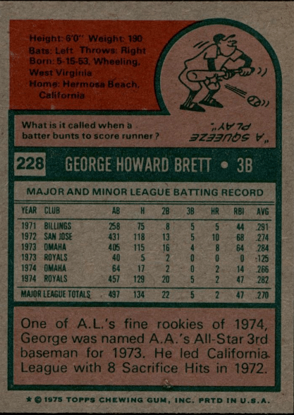 1975 Topps George Brett Vintage MLB Baseball Card #700 - Rookie Card - Pristine - Mint Condition