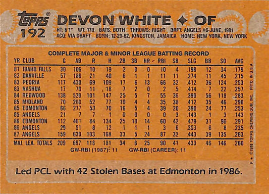 1988 Topps All-Star Rookie Devon White Vintage Baseball Card #192 - Mint Condition