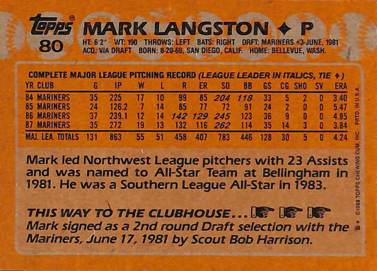 1988 Topps Mark Langston MLB Baseball Card #80 - Rookie Card - Mint Condition