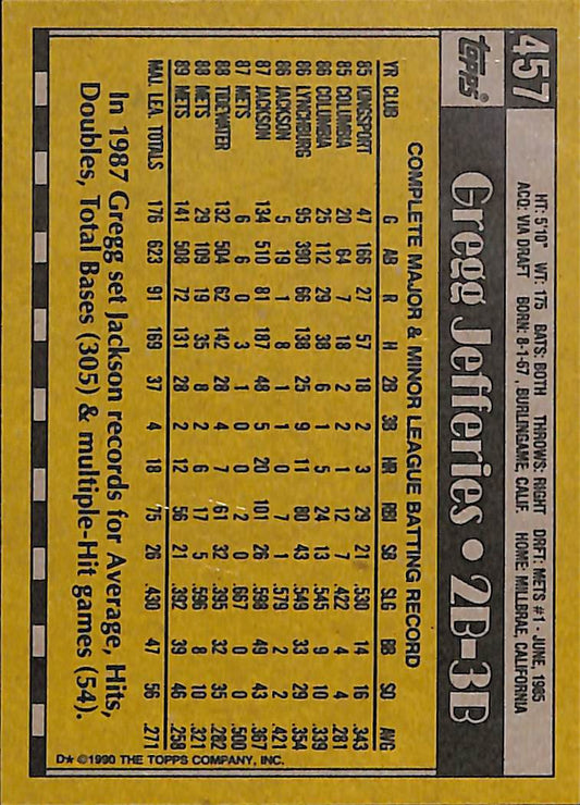 1990 Topps Gregg Jefferies All Star Rookie MLB Baseball Card #457 - Mint Condition