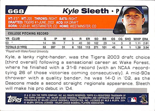 2003 Topps Draft Pick Kyle Sleeth MLB Baseball Card #668 - Rookie Card - Mint Condition