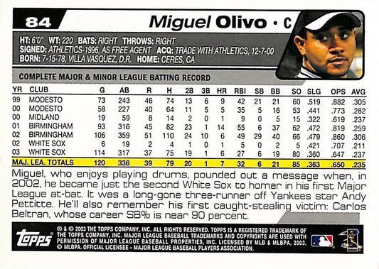 2003 Topps Miguel Olivo MLB Baseball Card #85 - Rookie Card - Mint Condition