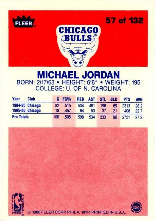1986 Fleer Vintage Michael Jordan NBA Rookie Basketball Card #57 - Rookie Card - Mint Condition
