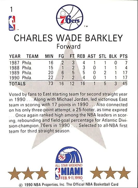 1990 NBA Hoops Charles Barkley NBA All -Star Basketball Card #1 - Mint Condition