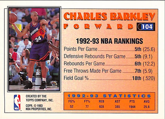 1993 Topps All-Star Charles Barkley NBA Basketball Card #104 - Mint Condition