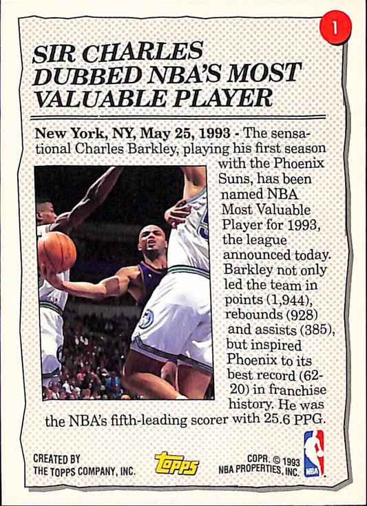 1993 Topps Charles Barkley NBA Highlight Basketball Card #1 - Mint Condition