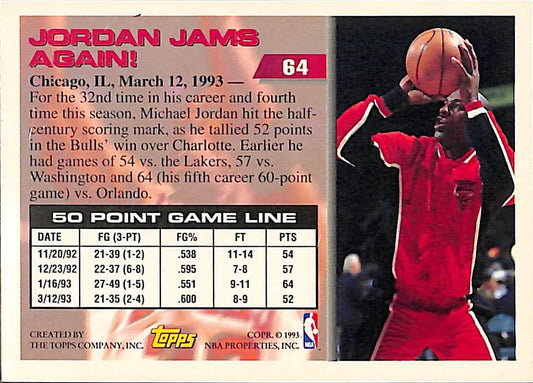1993 Topps Michael Jordan 50 Point Club NBA Basketball Card #64 - Mint Condition