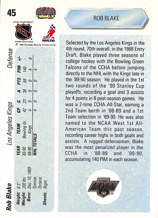 1990 Upper Deck Rob Blake Hockey Card #45 - Mint Condition