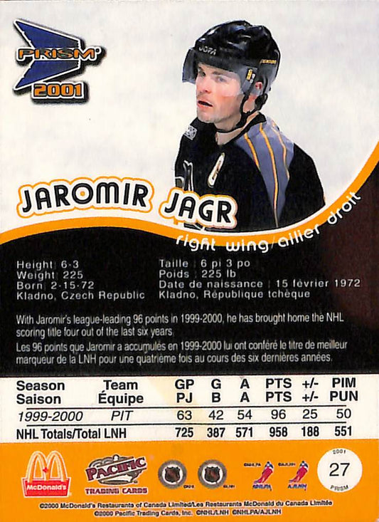 2001 Prism Jaromir Jagr Hockey NHL Card #27 - Mint Condition