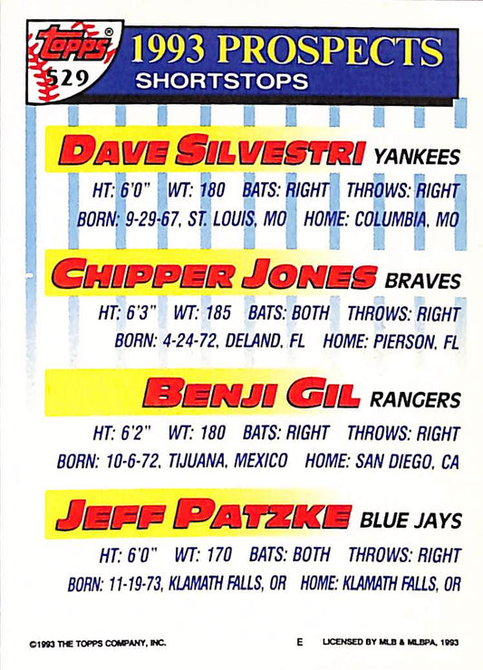 1993 Topps Prospects Chipper Jones MLB Baseball Card #529 - Mint Condition