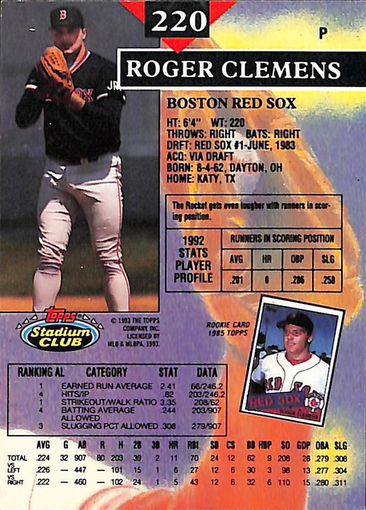 1993 Topps Stadium Club Roger Clemens MLB Baseball Card #220
