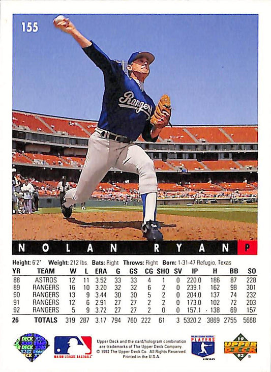 1993 Upper Deck Nolan Ryan MLB Baseball Card #155 - Mint Condition