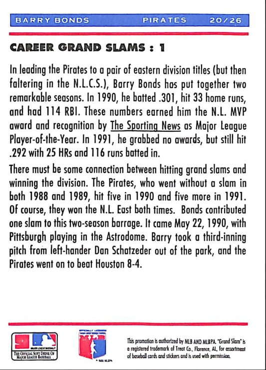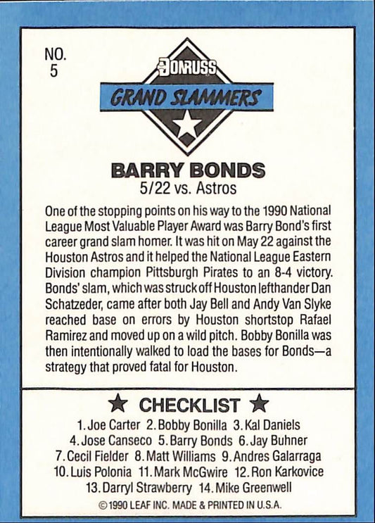 1991 Donruss Grand Slammer Barry Bonds Baseball Card #5 - Mint Condition
