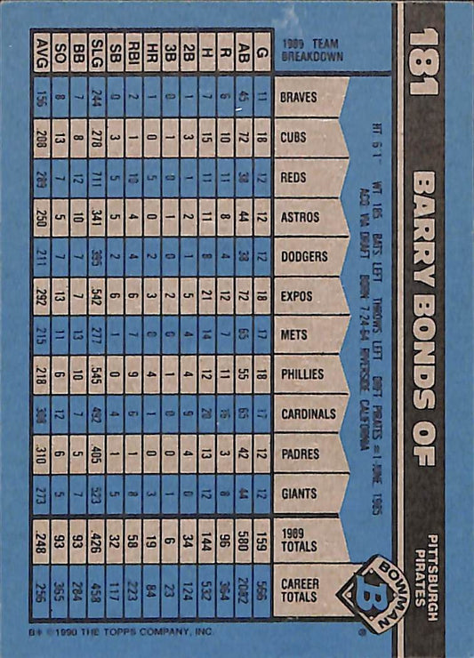 1990 Bowman Barry Bonds MLB Baseball Card #181 - Mint Condition