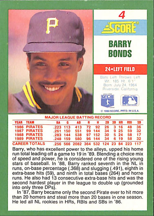 1990 Score Barry Bonds Baseball Card #4 - Mint Condition