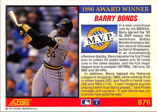 1991 Score MVP Barry Bonds Baseball Card #876 - Mint Condition