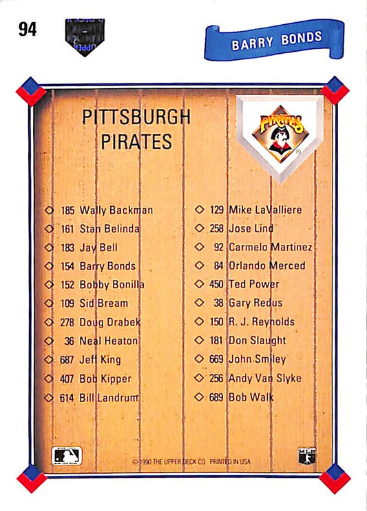 1991 Upper Deck Barry Bonds Baseball Card #94 - Mint Condition