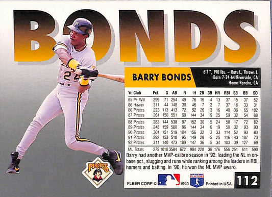 1993 Fleer Barry Bonds Baseball Card #112 - Mint Condition