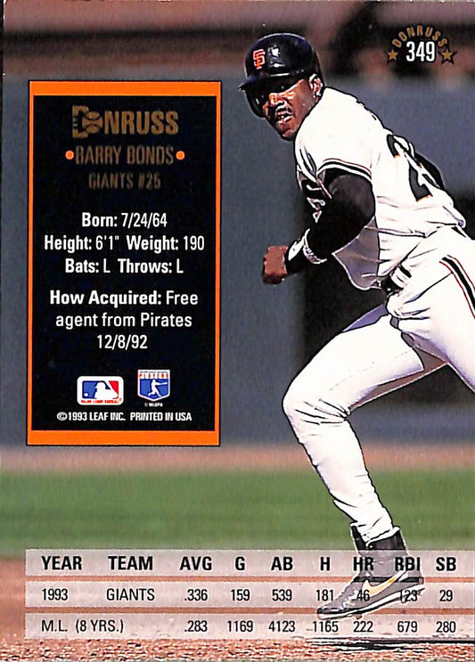 1994 Donruss Barry Bonds Baseball Card #349 - Mint Condition