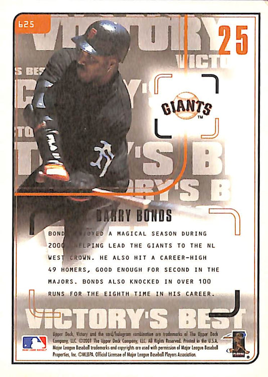 2001 Upper Deck Victory Best Barry Bonds Baseball Card #625 - Mint Condition