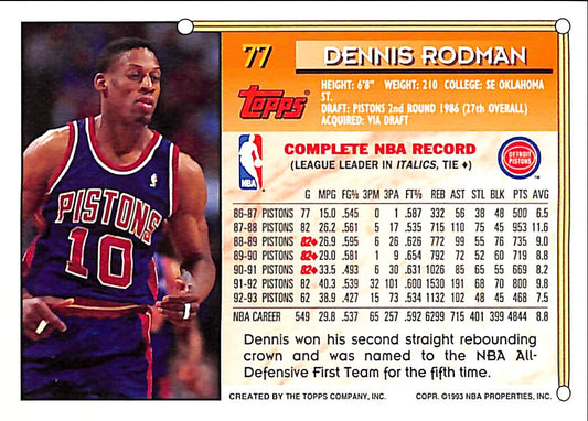 1993 Topps Dennis Rodman NBA Basketball Player Card #77 - Mint Condition