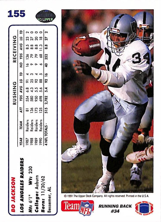 1991 Upper Deck Bo Jackson NFL Football Card #155 - Mint Condition