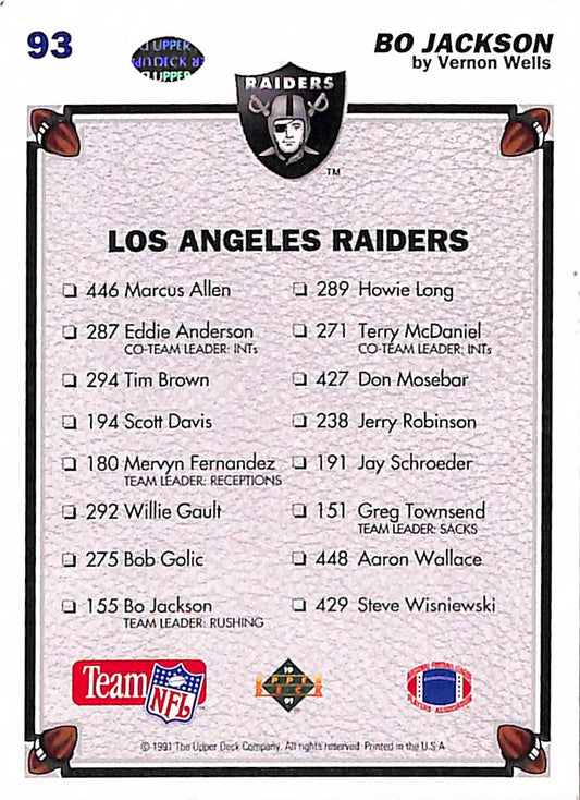 1991 Upper Deck Bo Jackson The Collectors Choice Football Card #93 - Mint Condition