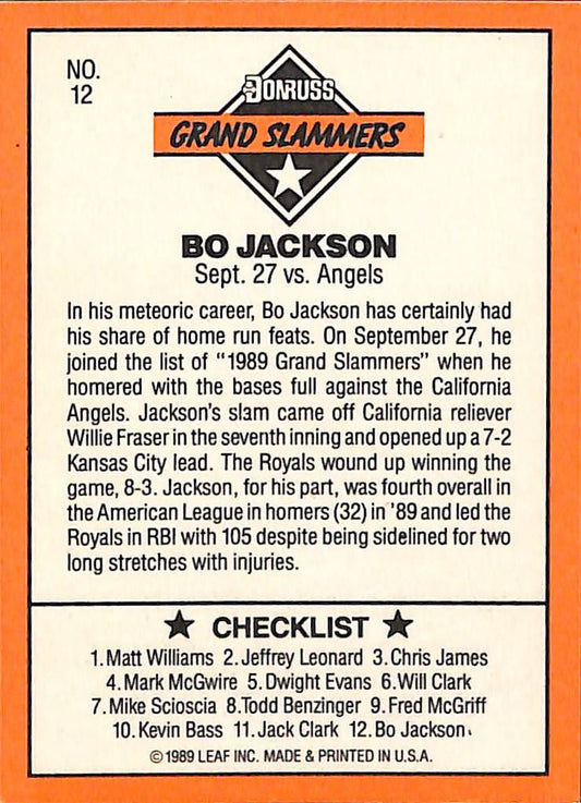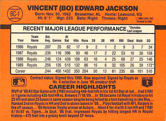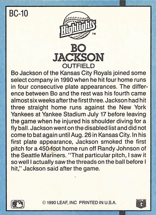 1991 Donruss Bo Jackson MLB Baseball Error Card Royals #BC-10 - Error Card - Mint Condition
