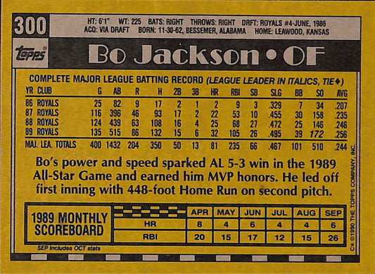 1990 Topps Bo Jackson Royals Baseball Card #300 - Mint Condition