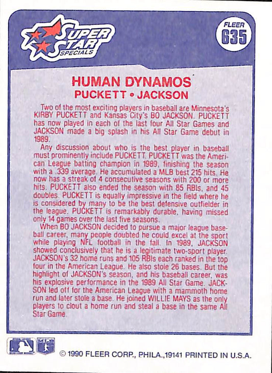 1990 Fleer Bo Jackson - Kirby Puckett Baseball Card #635 - Mint Condition