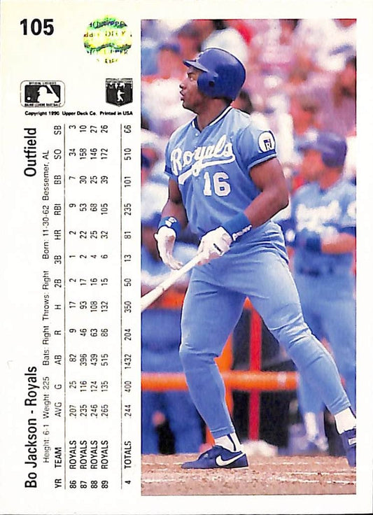 1990 Upper Deck Bo Jackson Baseball Card Royals #105 - Mint Condition