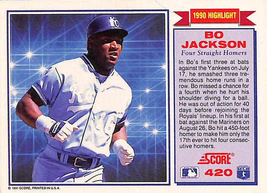 1991 Score Highlight Bo Jackson Baseball Card Royals #420 - Mint Condition