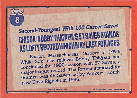 1991 Topps 40 Years Bobby Thigpen MLB Baseball Card #8 - Mint Condition