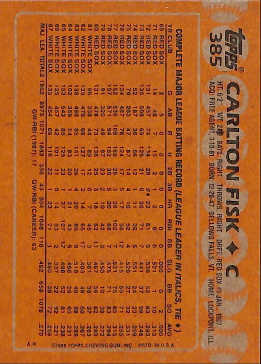 1987 Topps Carlton Fisk Vintage MLB Baseball Card #385 - Mint Condition