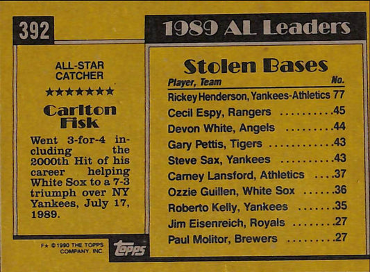 1990 Topps All-Star Carlton Fisk Vintage MLB Baseball Card #392 - Mint Condition