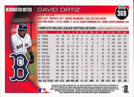 2010 Topps David Ortiz "Big Papi" Boston Red Sox MLB Baseball Card #369 - Mint Condition
