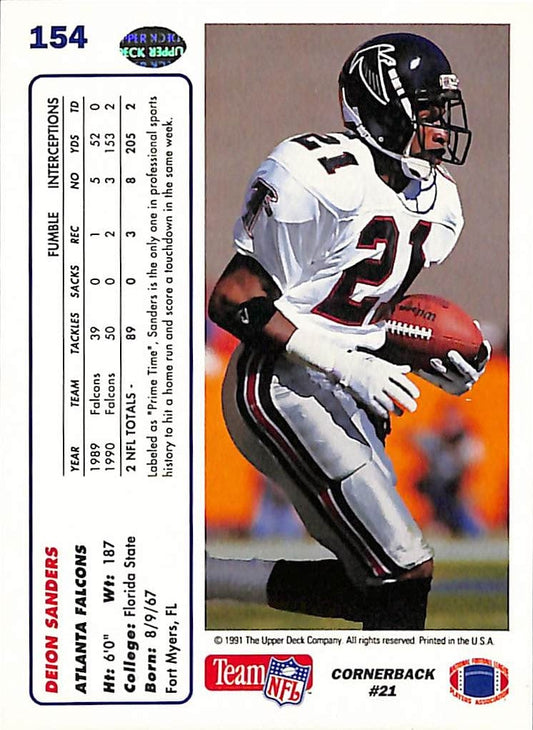 1991 Upper Deck Deion Sanders NFL Football Card #154 - Mint Condition