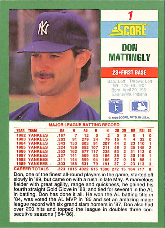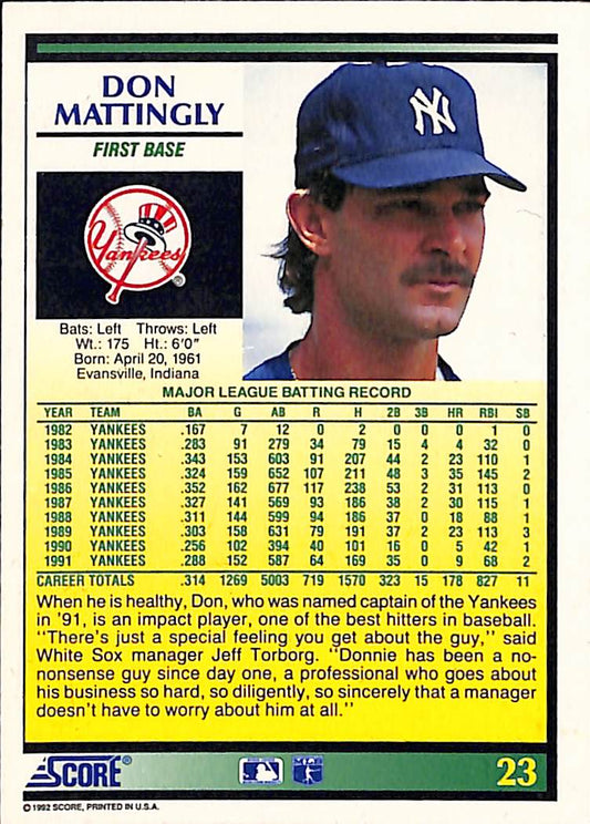 1992 Score Don Mattingly MLB Baseball Card #23 - Mint Condition