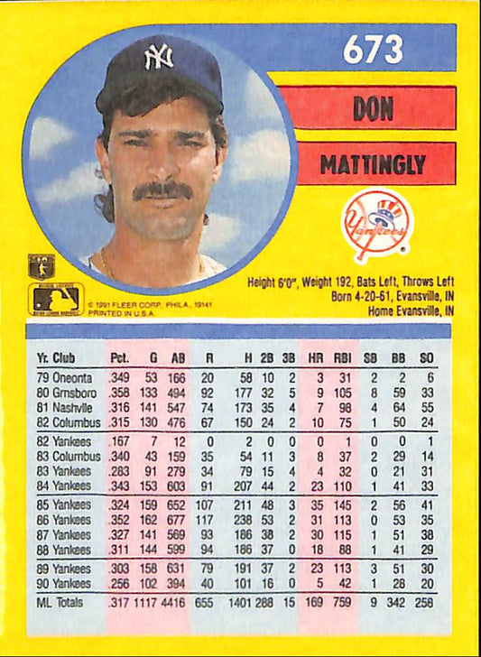 1991 Fleer Don Mattingly MLB Baseball Card #673 - Mint Condition