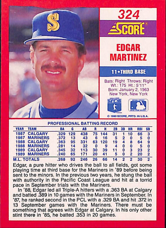 1990 Score Edgar Martinez Baseball Card #324 - Mint Condition