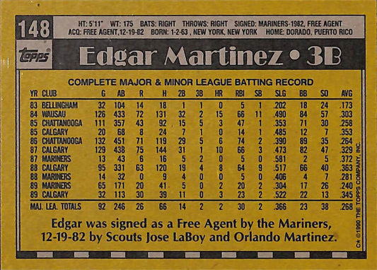 1990 Topps Edgar Martinez Baseball Card #148 - Mint Condition