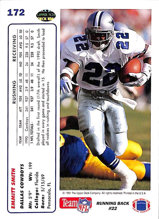 1991 Upper Deck Emmitt Smith NFL Football Card #172 - Mint Condition