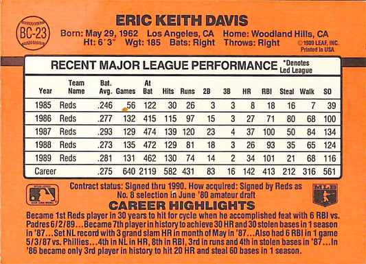 1990 Donruss MVP Eric Davis Baseball Player Card #BC-23 - Mint Condition