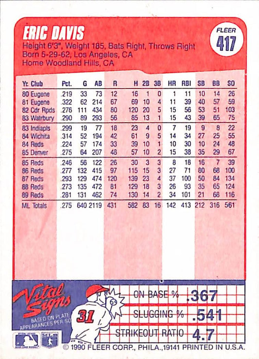 1990 Fleer Eric Davis Baseball MLB Player Card #417 - Mint Condition