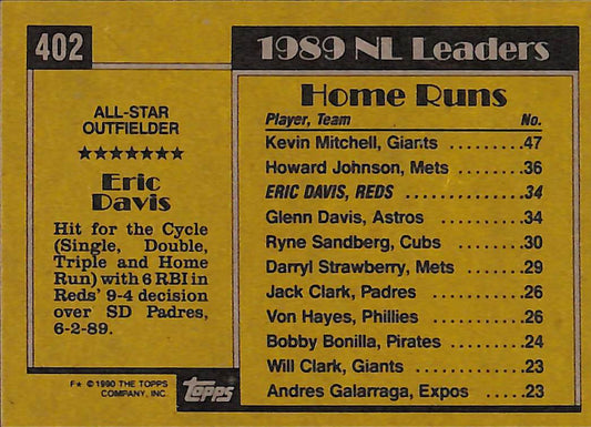 1990 Topps All-Star Eric Davis Vintage Baseball Card #402 - Mint Condition