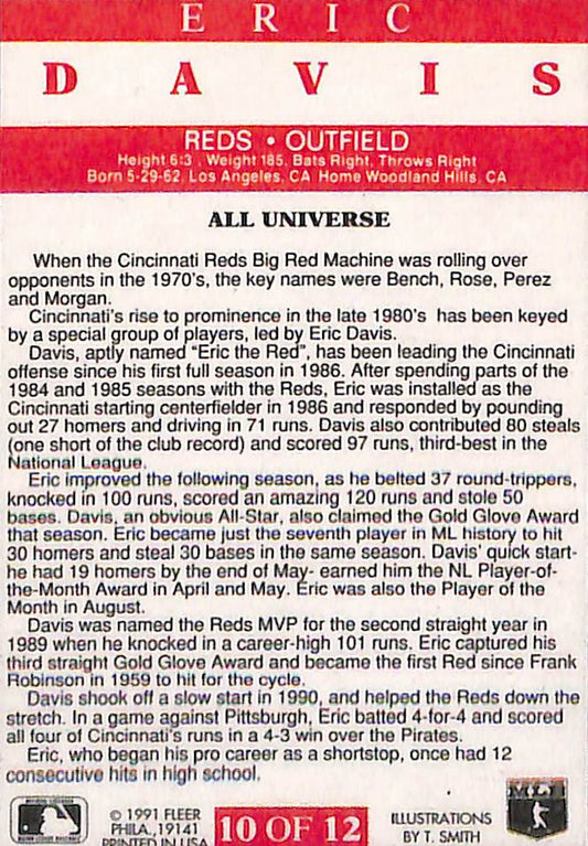 1991 Fleer All Universe Eric Davis MLB Baseball Card #10 - Mint Condition