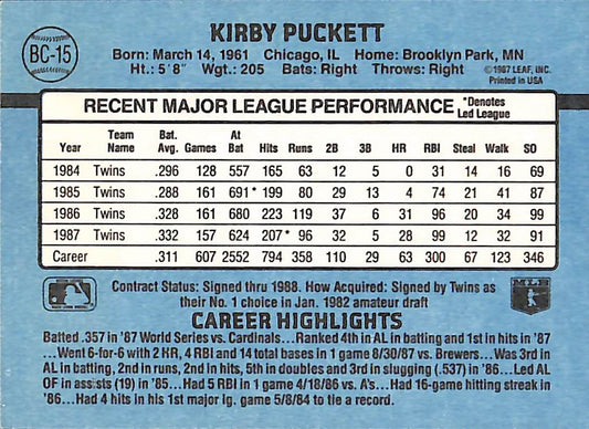 1988 Donruss MVP Kirby Puckett MLB Baseball Error Card #BC-15 - Error Card - Mint Condition