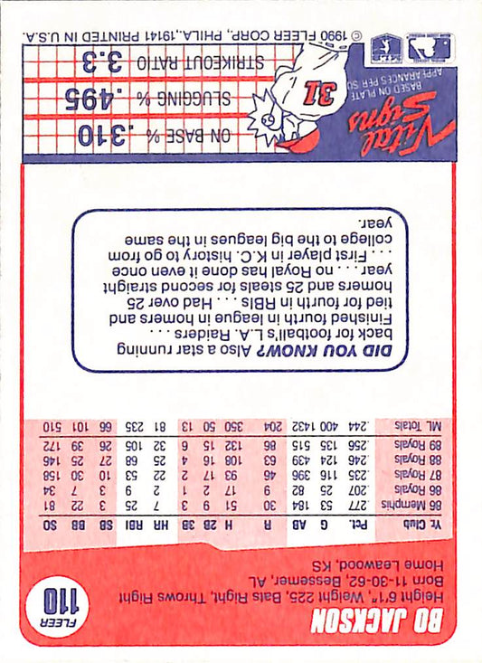 1990 Donruss Bo Jackson All Star Baseball Card Royals #61 - Error Card - Mint Condition