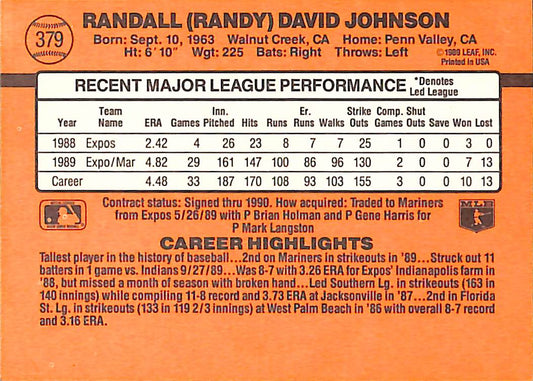 1990 Donruss Randy Johnson Baseball Card Royals #379 - Error Card - Mint Condition