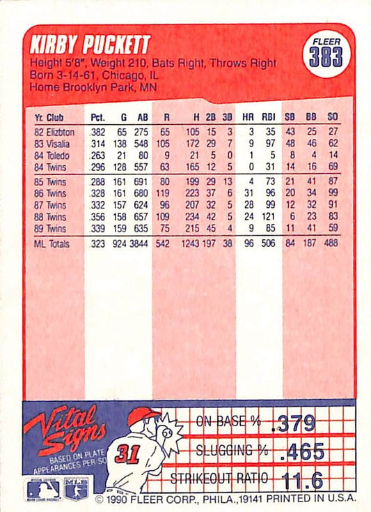 1990 Fleer Kirby Puckett Baseball Player Error Card #383 - Error Card - Mint Condition